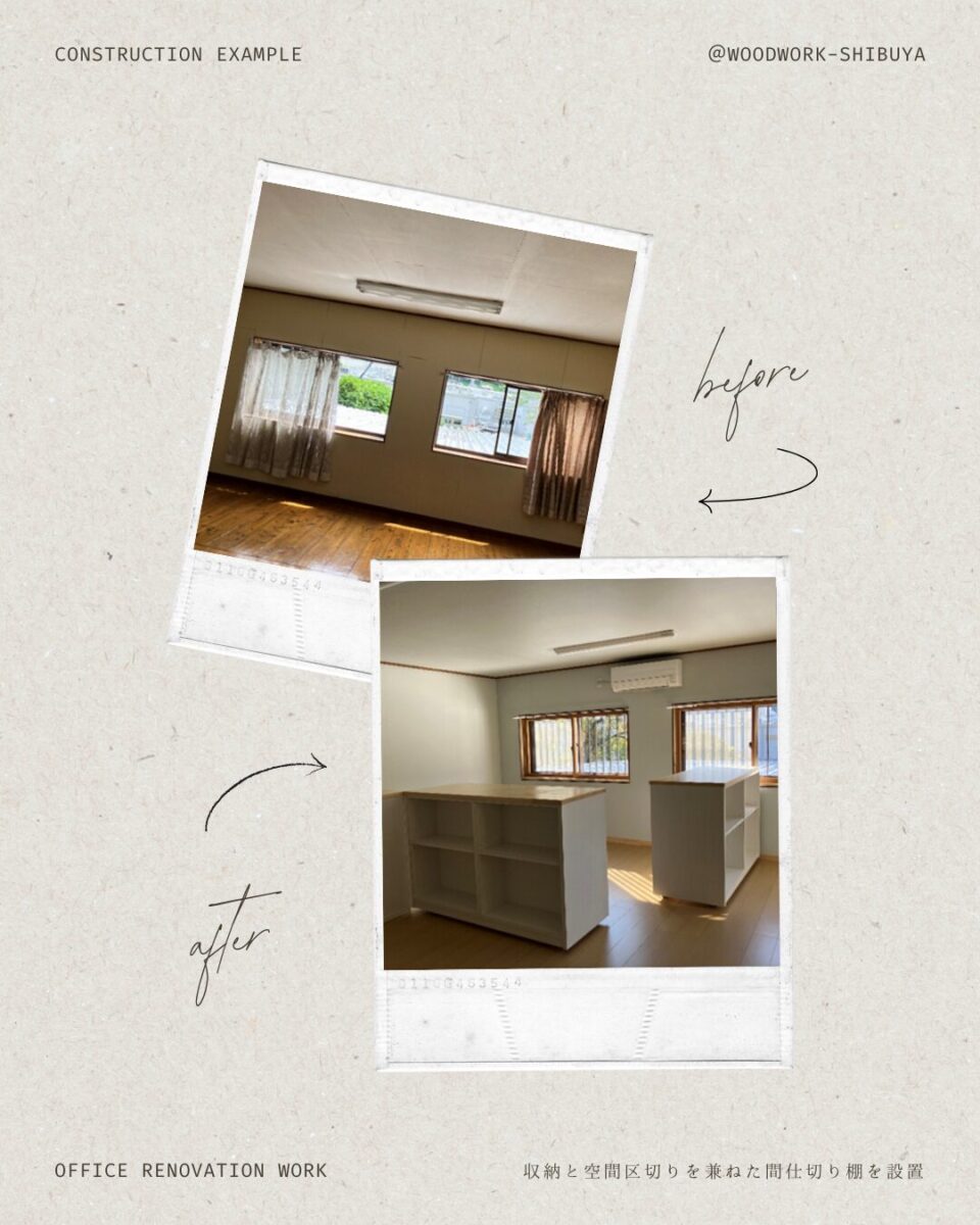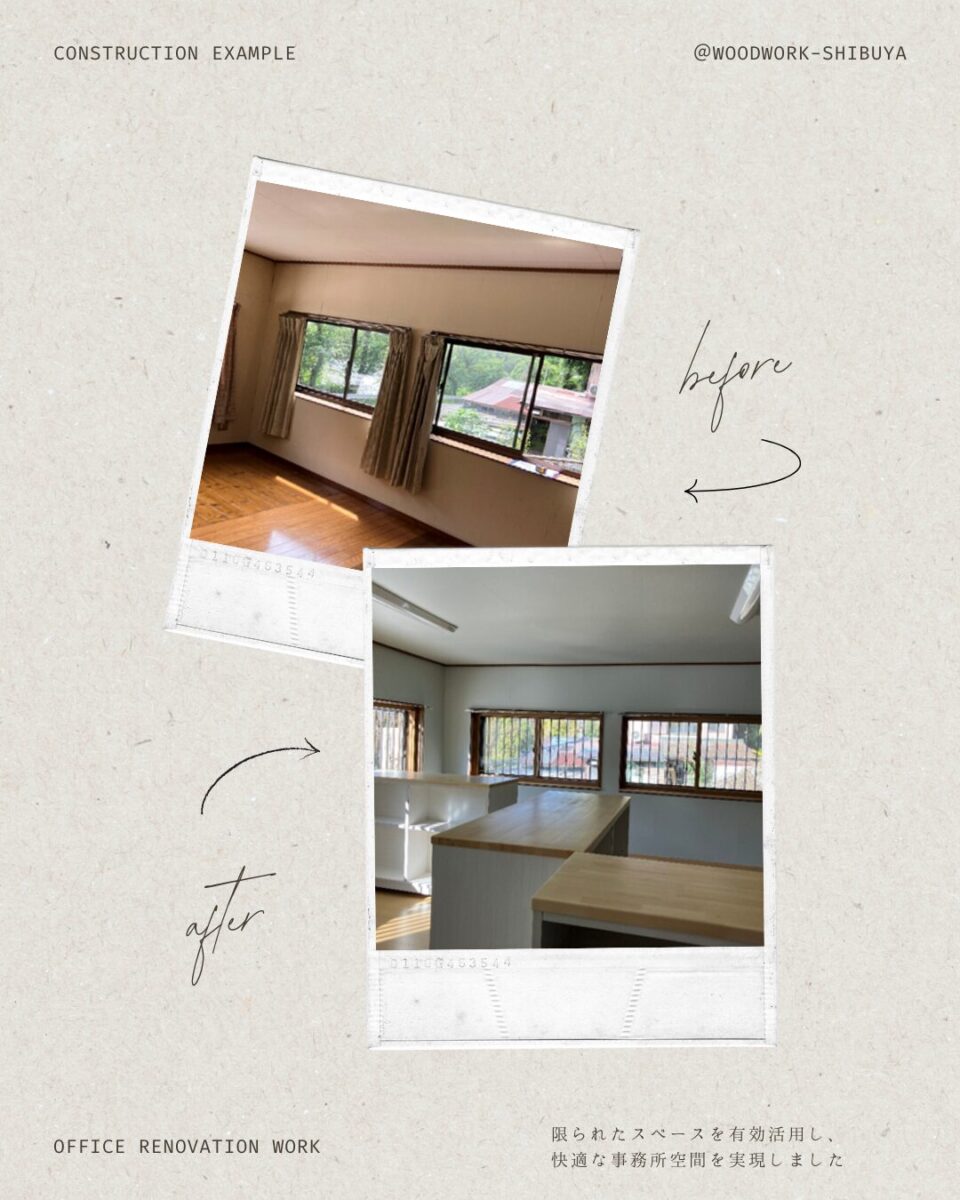 #事務所改修 #施工記録 #渋谷木工所 #WoodworkShibuya #内装工事 #町内某事務所 #働く環境づくり #地域の工務店 #誠実な仕事 #空間整備