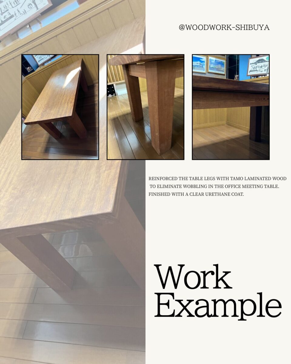 #木工修繕 #テーブル補強 #事務所家具 #タモ材 #ウレタンクリアー #打合せテーブル #ガタツキ解消 #家具メンテナンス #WoodworkShibuya #安心安全の家具