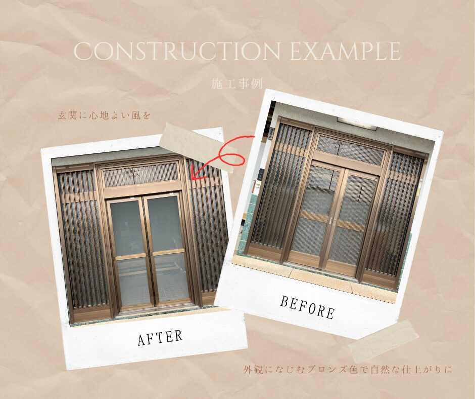 #渋谷木工所 #玄関リフォーム #網戸設置 #引分け戸 #ブロンズ色 #職人の手仕事 #町内施工 #快適な暮らし