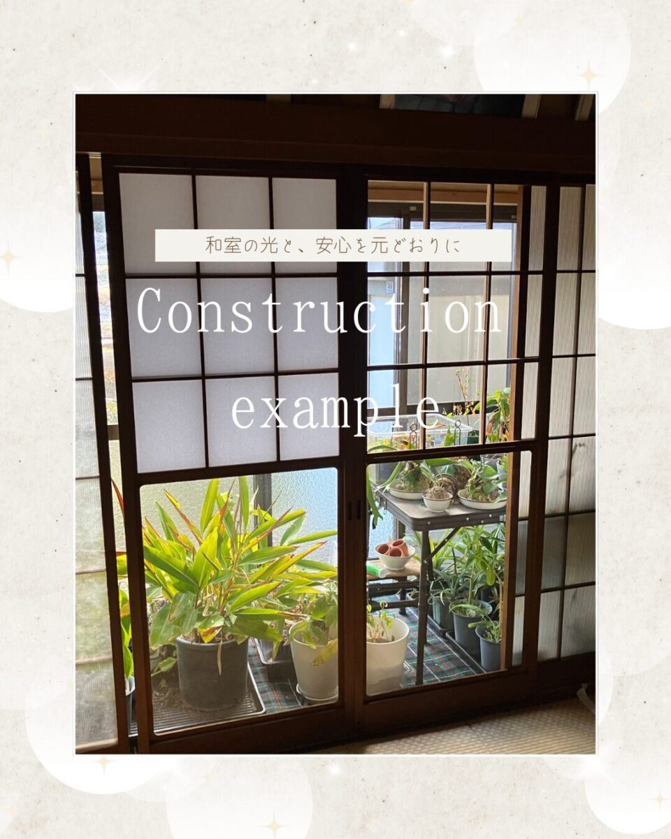 雪見部分のガラスが割れてしまったため、修繕対応を行いました。