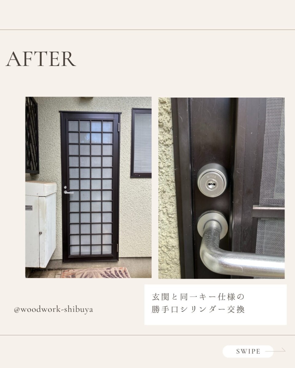 ・ 勝手口シリンダー交換(玄関と同一キー仕様)