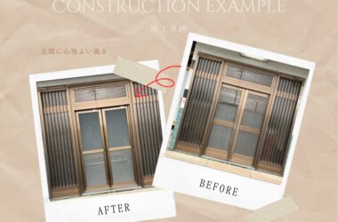 市内の民宿にて、玄関の木製引違い戸のガラス修繕を行いました。 割れていた1枚を新しい透明ガラス(3mm)に交換し、 枠内へきれいに落とし込み仕上げ。 木製の風合いをそのままに、 安全で見た目もすっきりとした玄関になりまし […]2025年11月03日